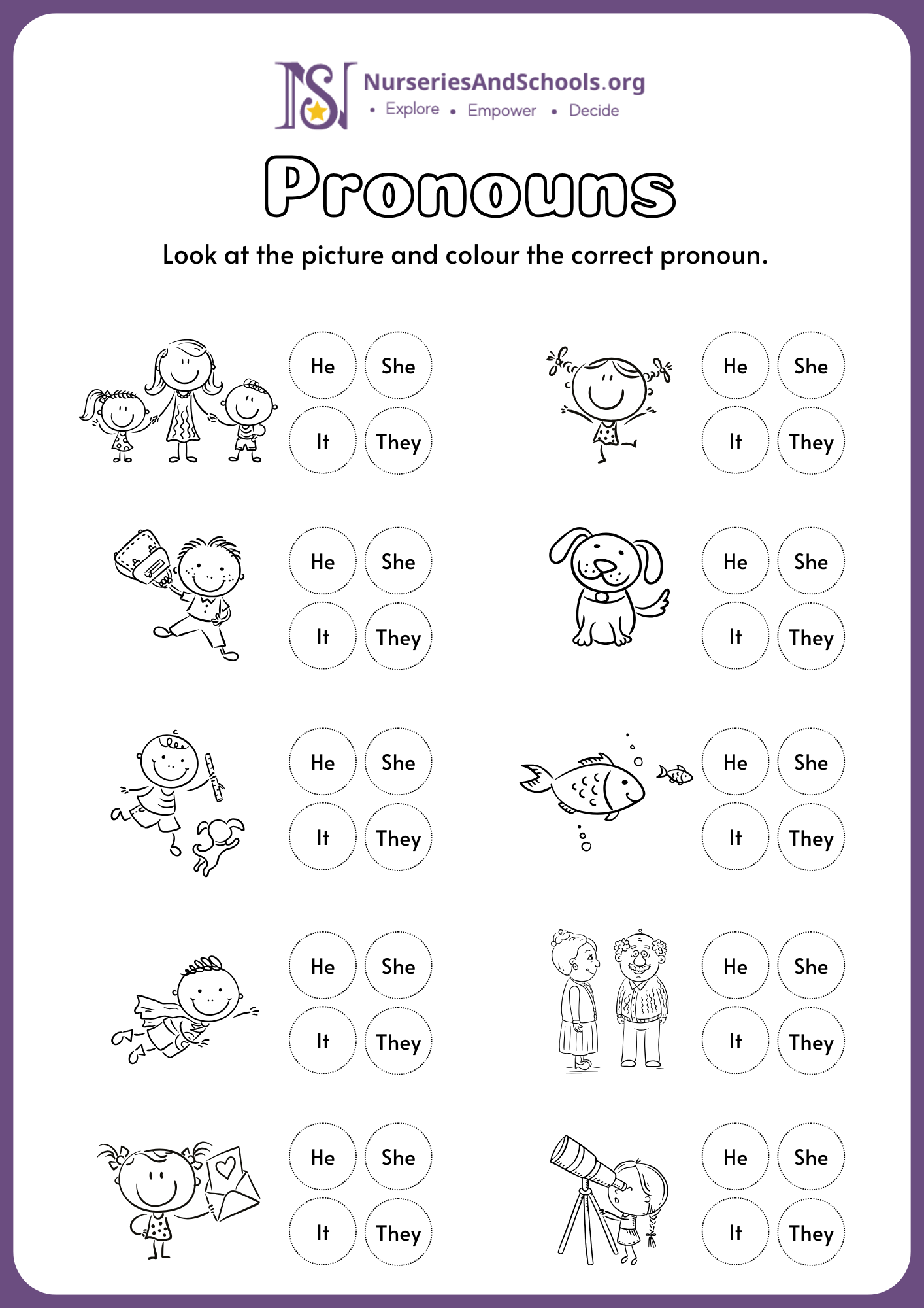 color the correct pronoun.