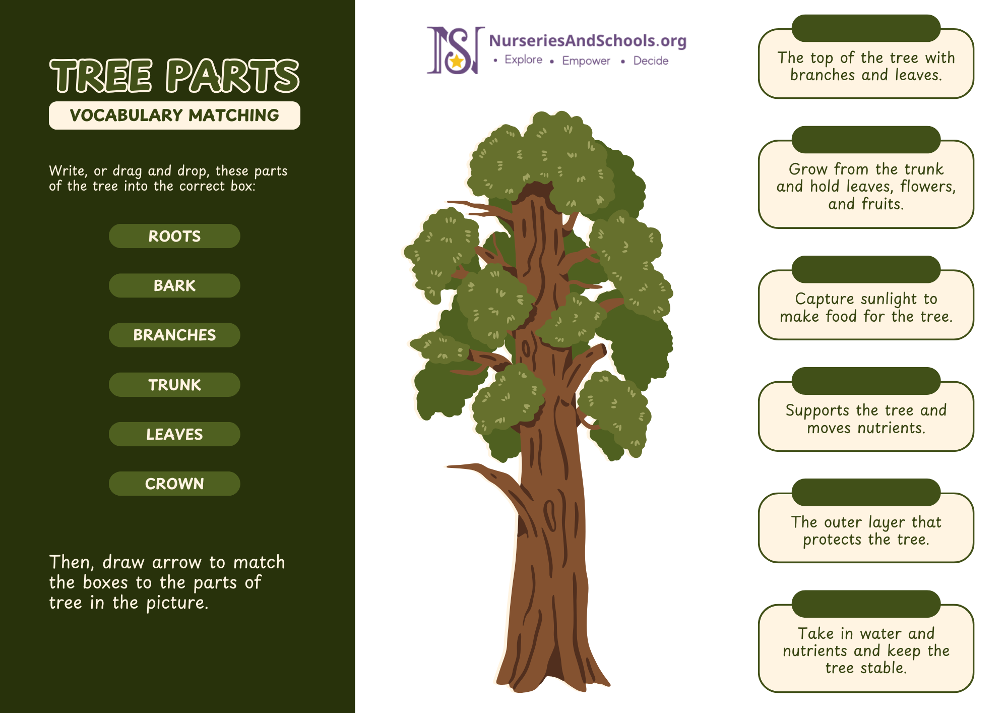 Then, draw an arrow to match the boxes to the parts of the tree in the picture.